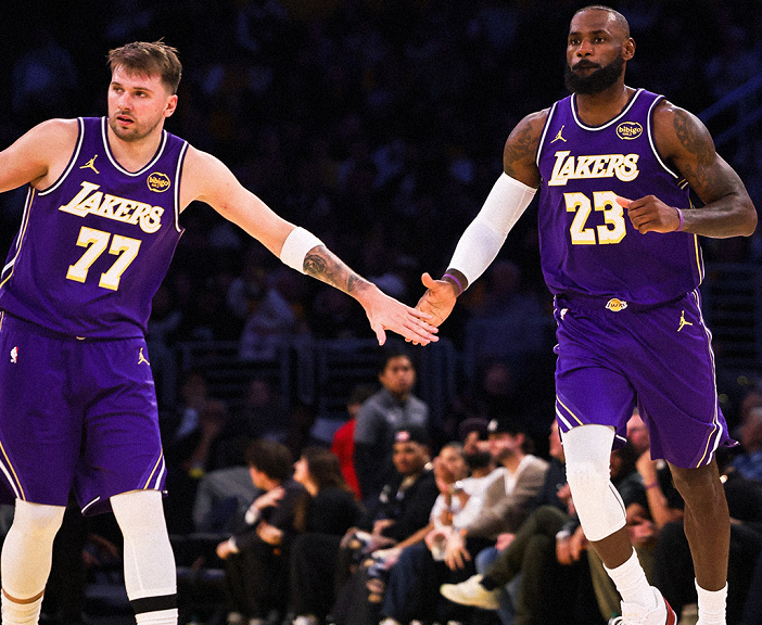 没有里夫斯,老詹扮演着合格二当家的角色,独砍24分+5篮板+3助攻。尤其是上半场,老詹攻下20分,老夫聊发少年狂,成为NBA历史首位在年满41岁后半场轰下20+的球员。八村塁则扮演着板凳匪徒的角色,吃饼吃到撑,11中9砍下23分,高效得离谱。更关键的是,公牛队与湖人队疯狂对轰,恰逢东契奇73分两周年,逼出了无双模式的卢卡!卢卡出战38分钟,25投15中(三分球14中8),罚球12中8,爆砍46分+7篮板+11助攻的豪华数据。与此同时,卢卡一战刷爆多项NBA纪录。